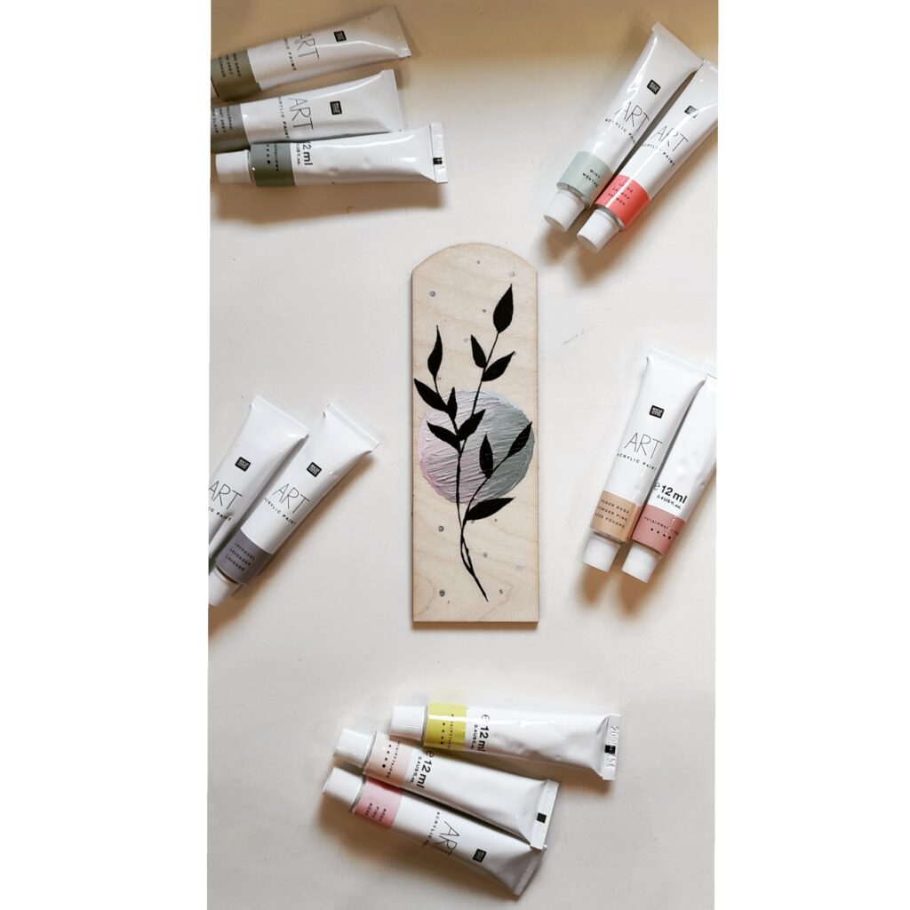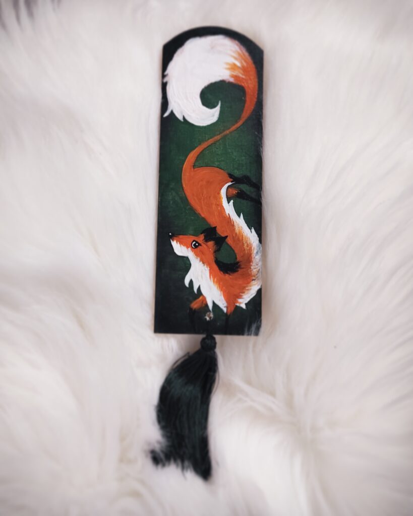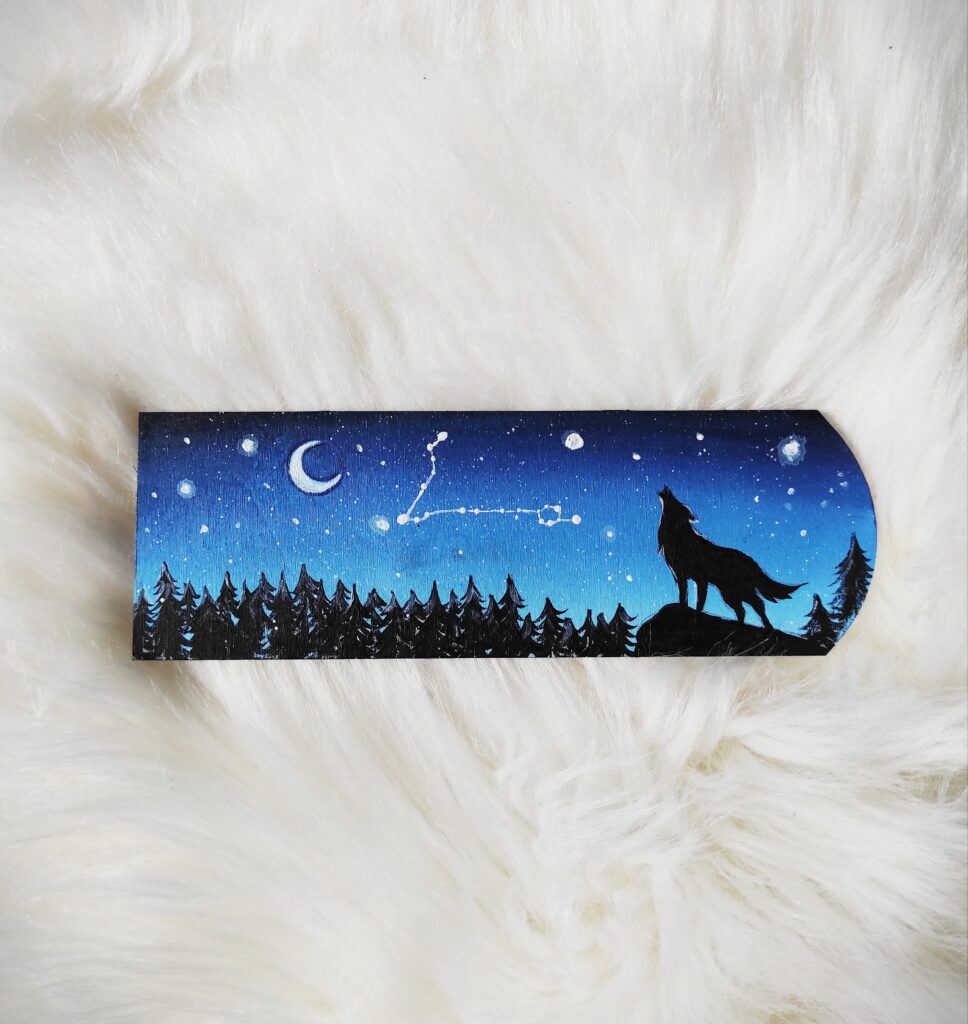 Ręcznie malowane zakładki, na sklejce o wymiarach 15 cm x 5 cm.